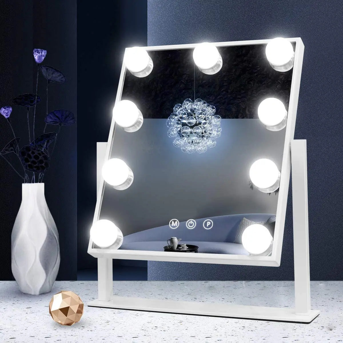 Hansong Professional Vanity Makeup Mirror choose the light closing to the light of the day, to better grasp the degree of shade. Made of high quality aluminum frame, strong, solid and varnished tinplate metal frame and base allow it to stay sturdy on table. Glossy seamless splicing frame makes the mirror more high-grade and beautiful.