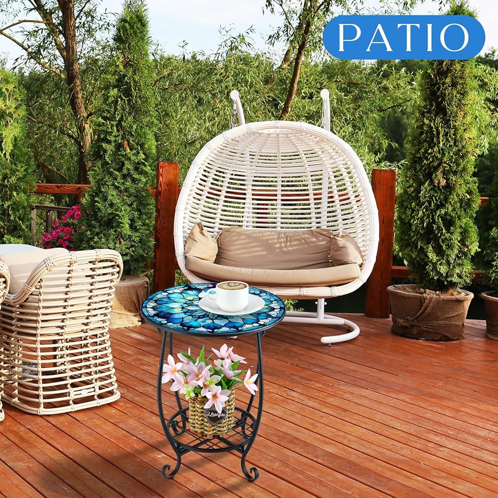 Smart Size: The Metal Patio Side Table Tabletop Is 14 Hes In Diameter And 17 Hes In Height, Which Is Small But Accommodating; This Outdoor Side Table Is Divided Into 2 Layers, The First Layer Panel Is Printed With Exquisite Patterns, And The Second Layer Adopts A Hollow Design To Store Your Items At The Maximum Acity