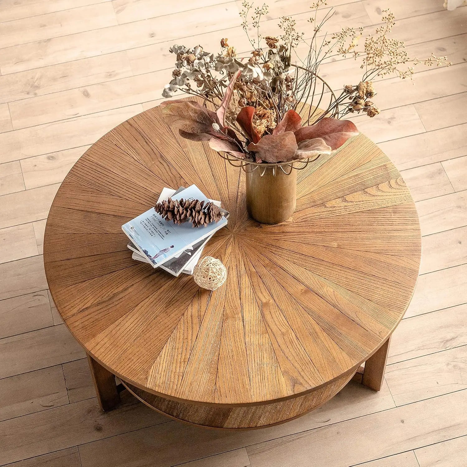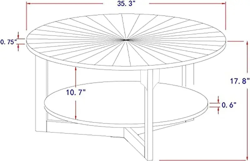 35in x 35in x 17.8in - 2-TIER ROUND RUSTIC WOODEN COFFEE TABLE W/STORAGEe Table for Living Room, 2 Tier Circle Coffee Table with Storage, Rustic Natural Coffee Table (35" Dx35 Wx18 H)