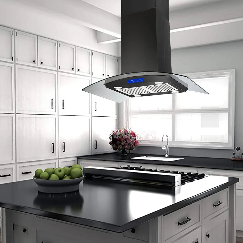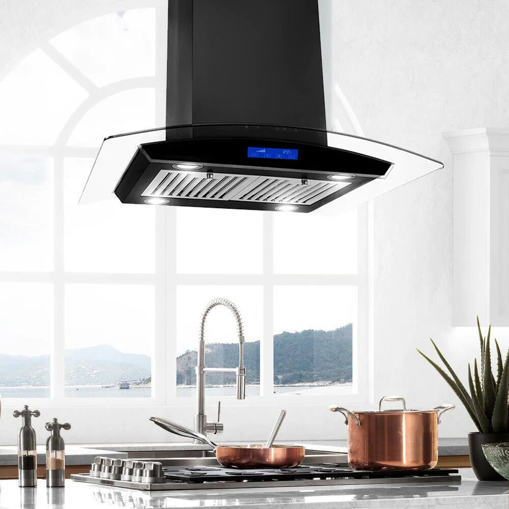 36in - 900CFM STAINLESS STEEL, TEMPERED GLASS ISLAND MOUNT RANGE HOOD