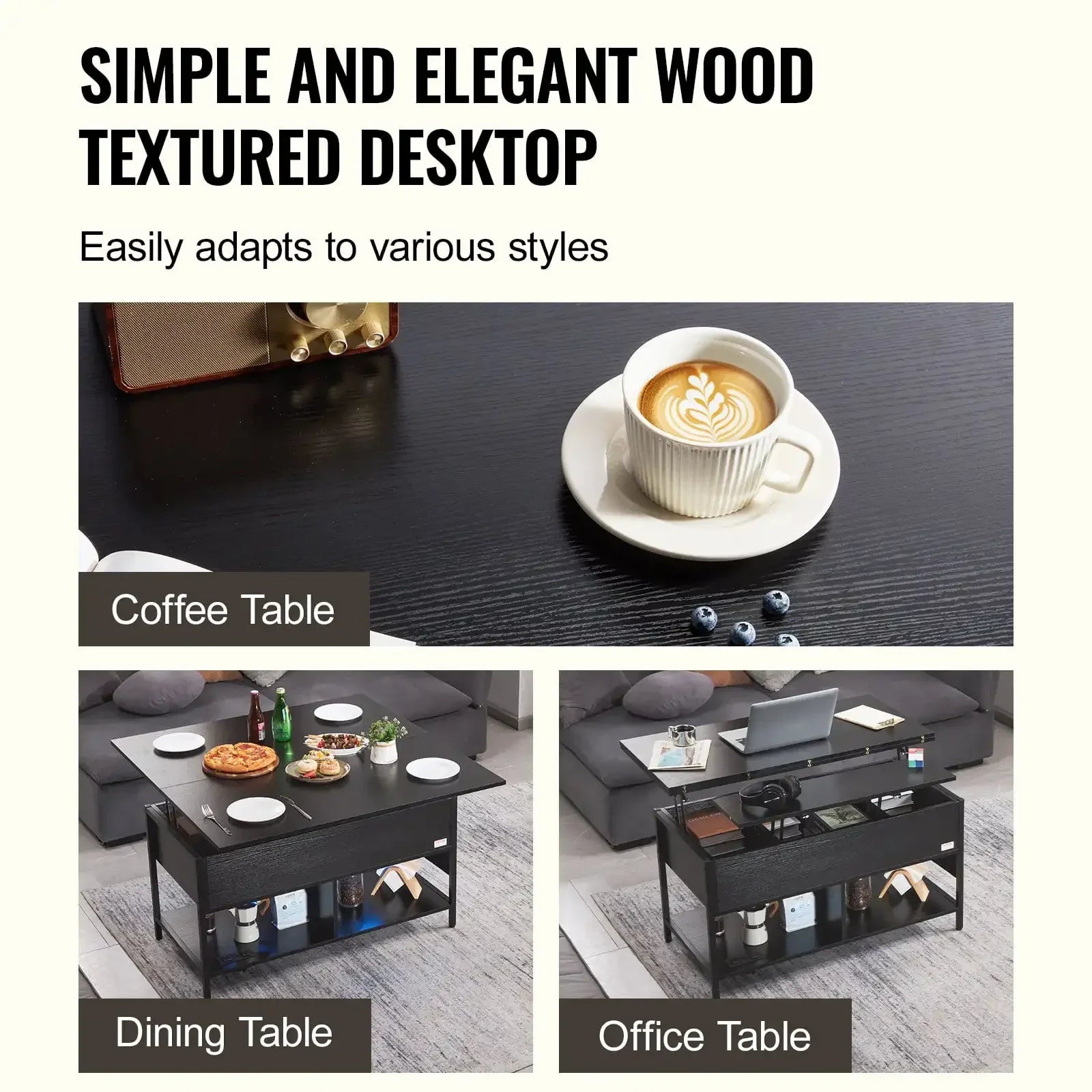 - Lift-Top Design: Converts for work or dining.