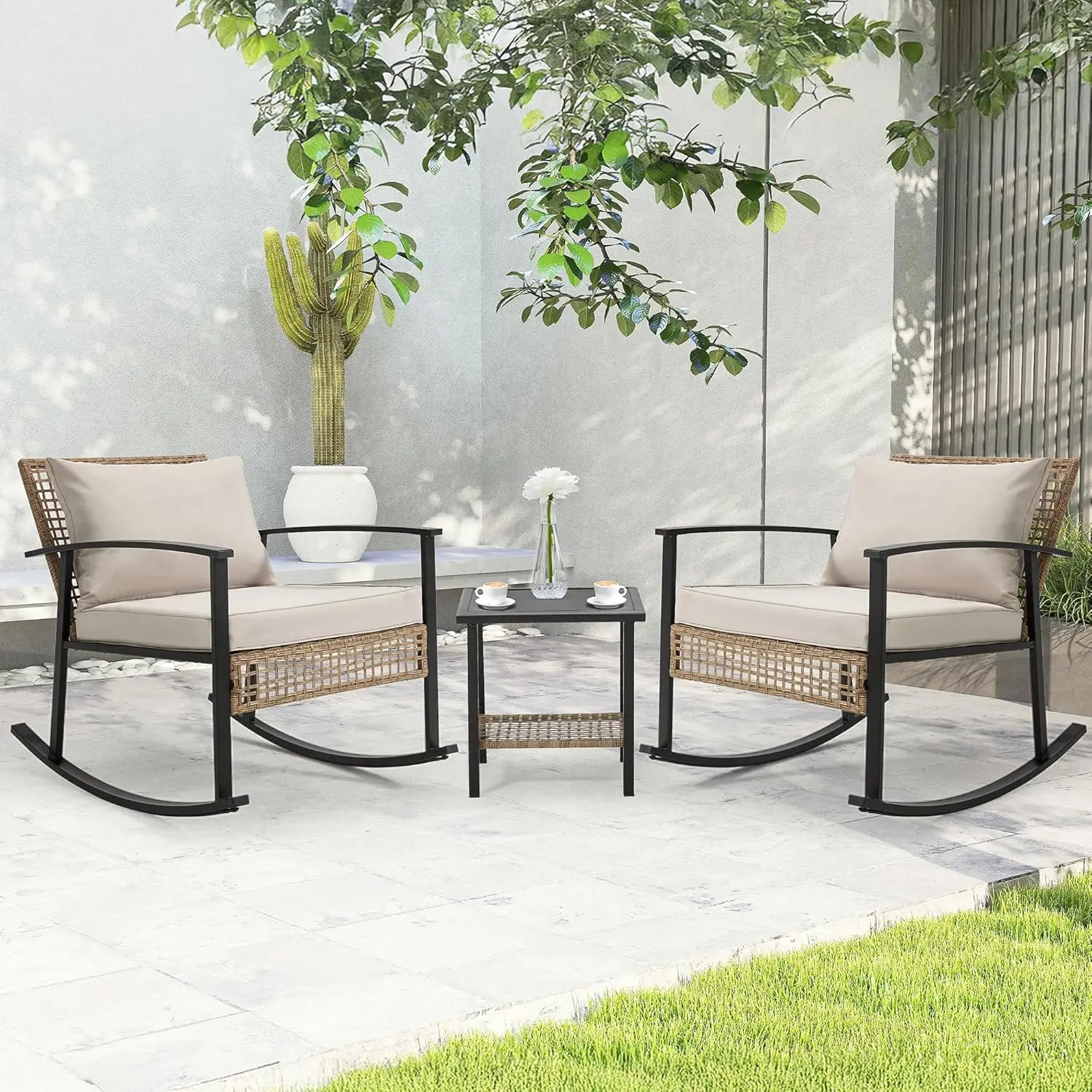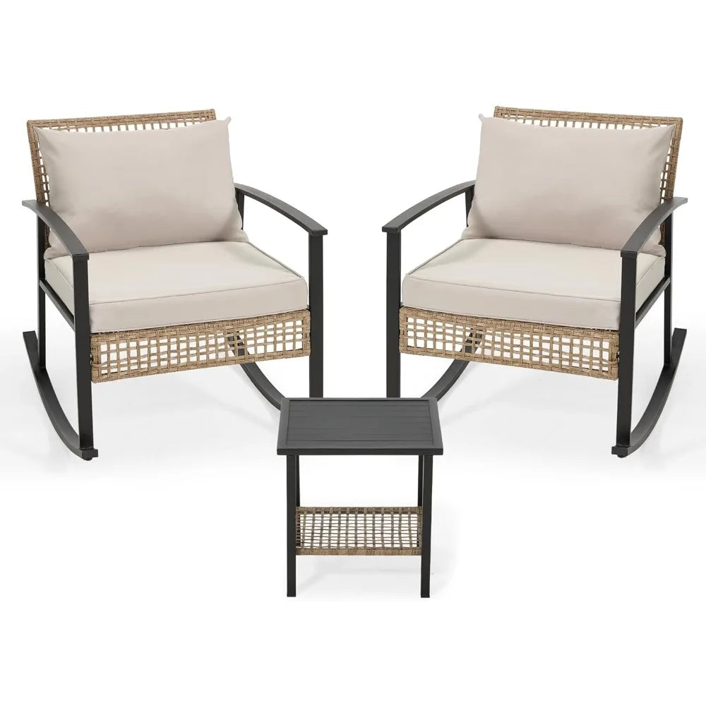 3pcs - OUTDOOR RATTAN ROCKER PATIO/GARDEN FURNITURE SET