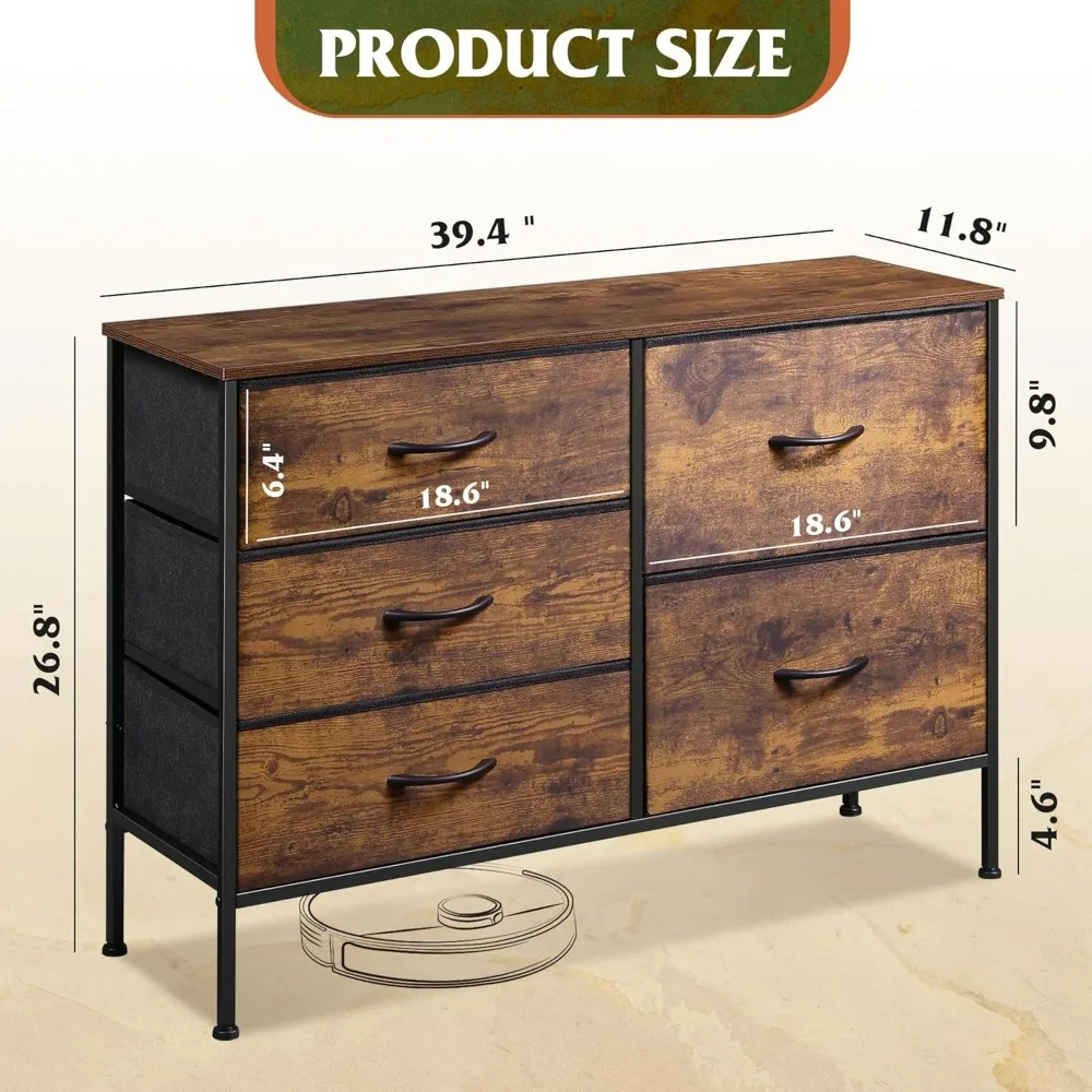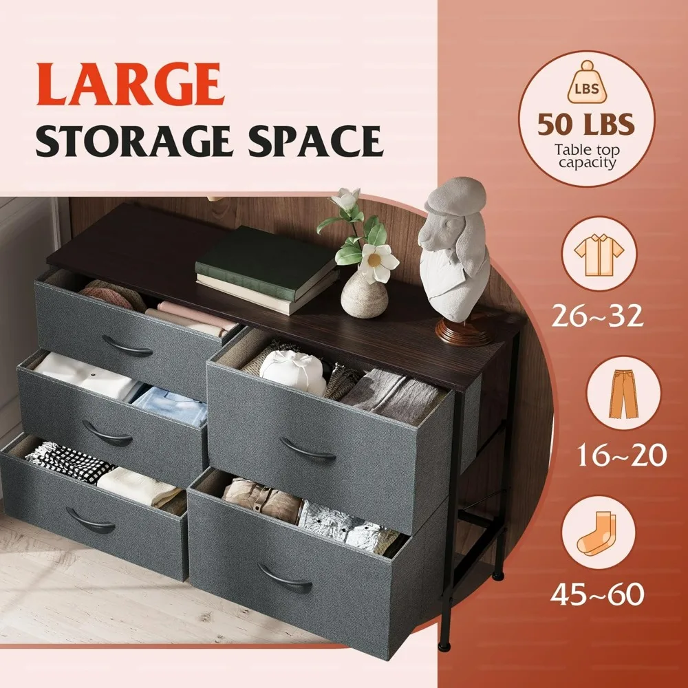 5-Drawers - WIDE FABRIC DRESSER/ORGANIZERS BEDROOM/LIVING ROOM