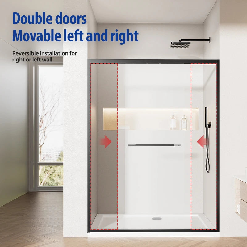 This shower glass door features a silent pulley design, which opens and closes without noise.