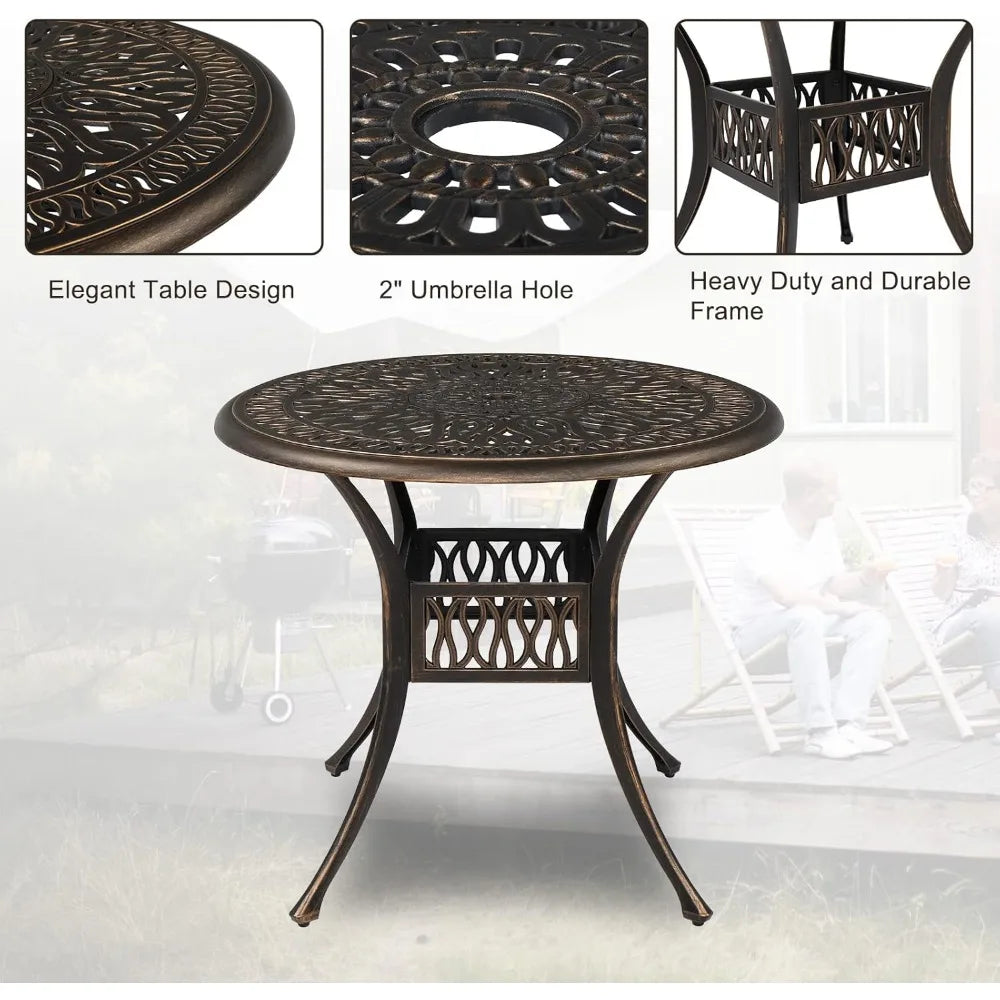5pcs - POWDER COATED CAST ALUMINUM UMBRELLA PATIO TABLE