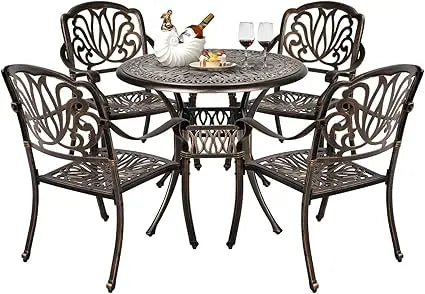 - Cast Aluminum Patio Dining Set: The patio table and chairs are crafted from cast aluminum, a material renowned for its high strength, corrosion resistance, and weather resilience. This ensures not only stability and weight-bearing capacity but also long-lasting durability, making it an exquisite and high-quality furniture option.