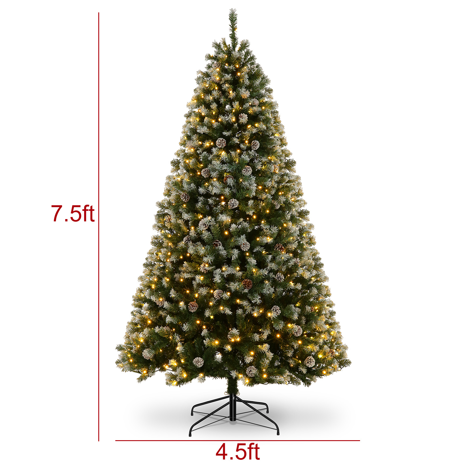 · 【7.5ft Impressive Height】This magnificent 7.5-foot Christmas tree creates a commanding presence in any room, making it the perfect focal point for your holiday celebrations. Its towering stature provides ample space for ornaments and decorations while creating a grand, festive atmosphere that captures the true spirit of Christmas.