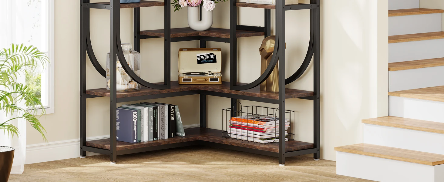 7-Shelf Corner Bookshelf, Display Rack for Living Room Home Office