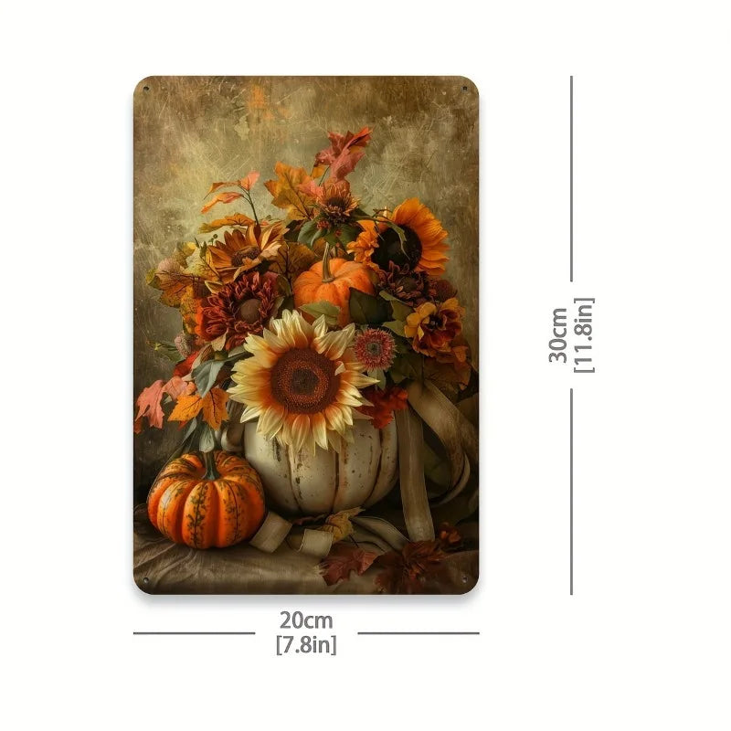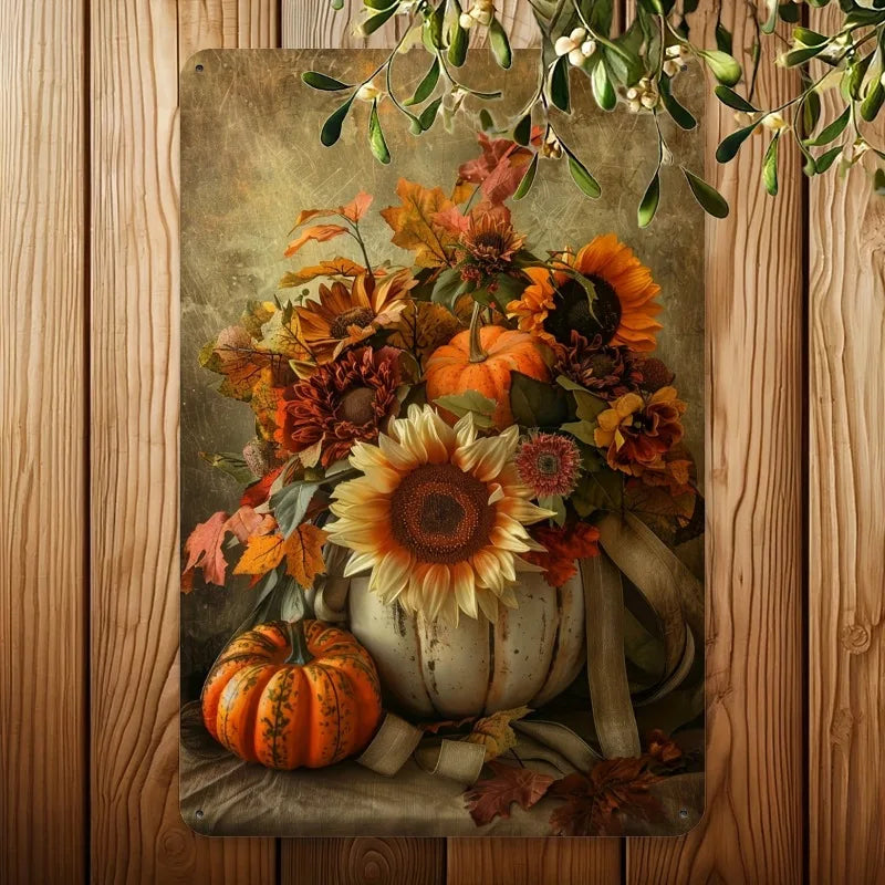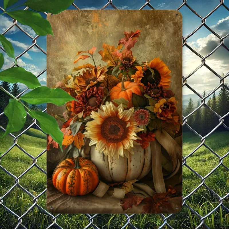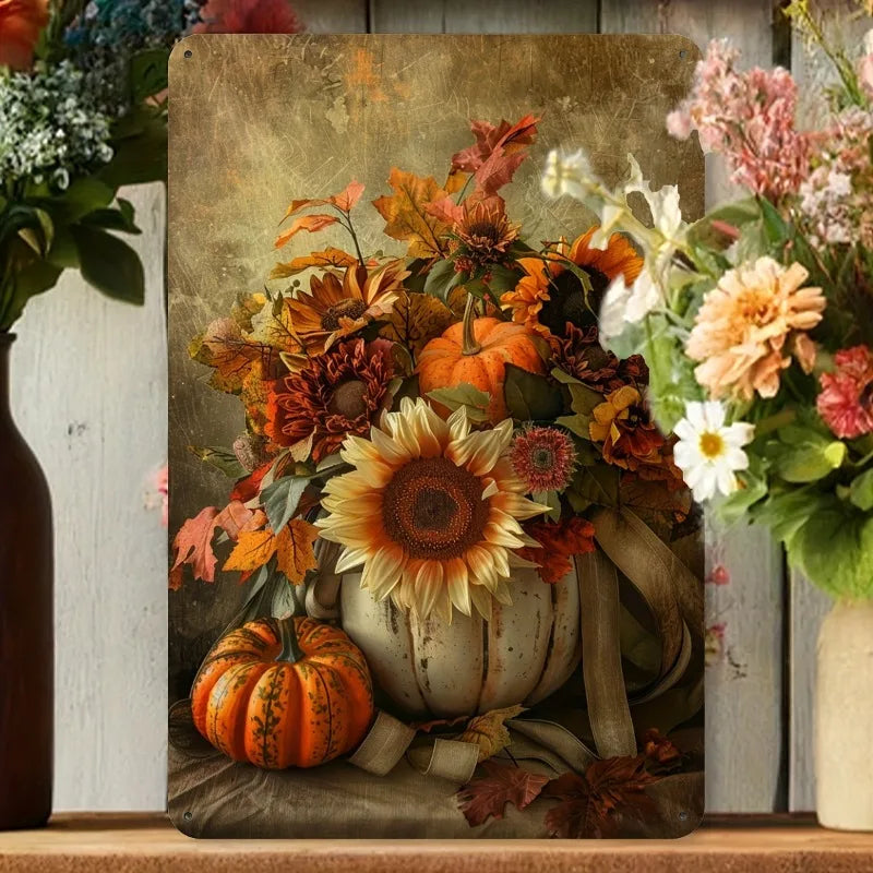 8in x 12in - VINTAGE PUMPKIN WITH FLORAL METAL SIGN