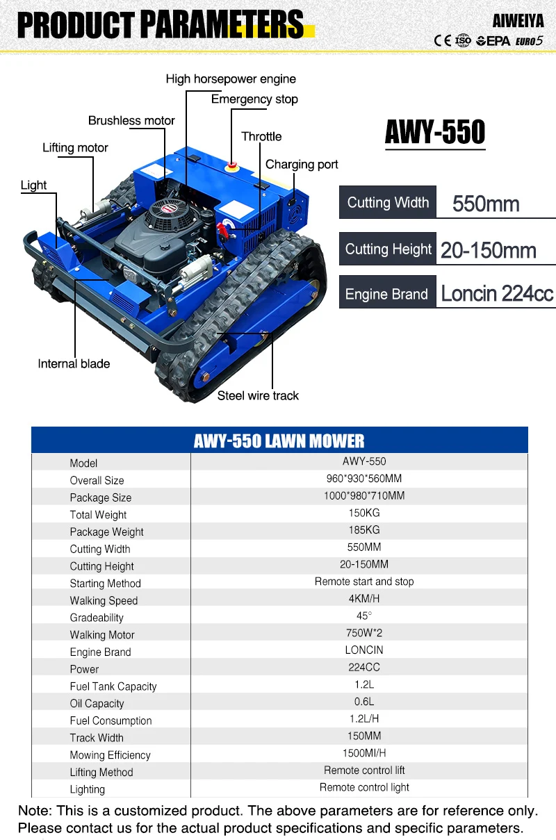 Mowing Efficiency: 1500M2/H