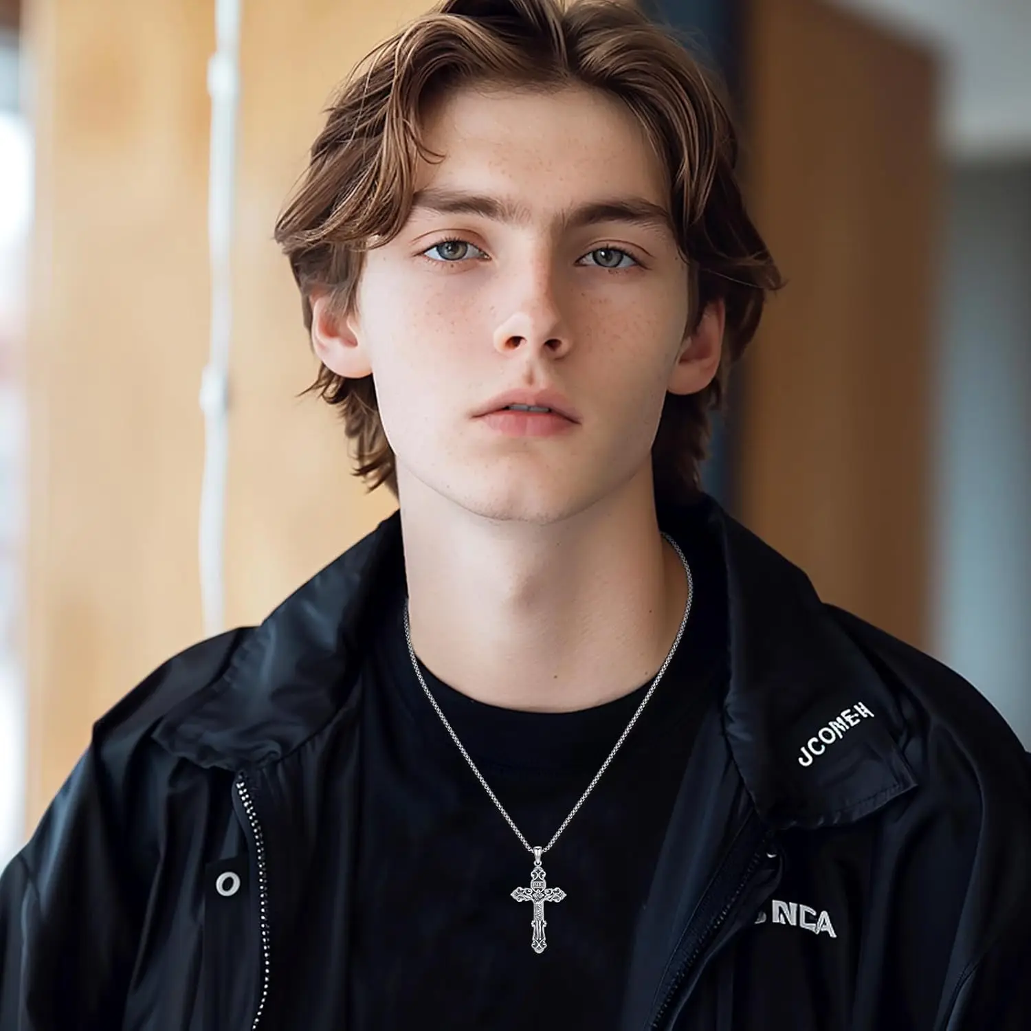 Jesus Cross Necklace Men: The cross symbolizes hope, victory over death and eternal life. Christians draw the cross on the chest or wear the cross to strengthen their faith, for purification or to commemorate the death of Jesus to save all mankind