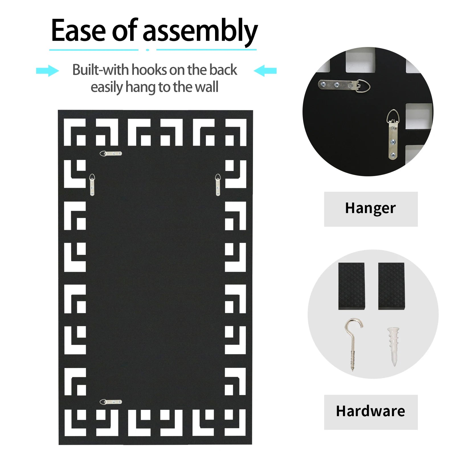 Wall Mounted Design - The rectangular wall mirror for living room back is made of solid MDF wood frame, built with strong 4 D-ring hooks, you can hang this decor mirror in vertical or horizontal, hang this large mirrors for walls within 10 minutes, no worries about falling off, the hall mirror packaging is sturdy, it has passed drop test over 1.2m height, greatly lower the breakage