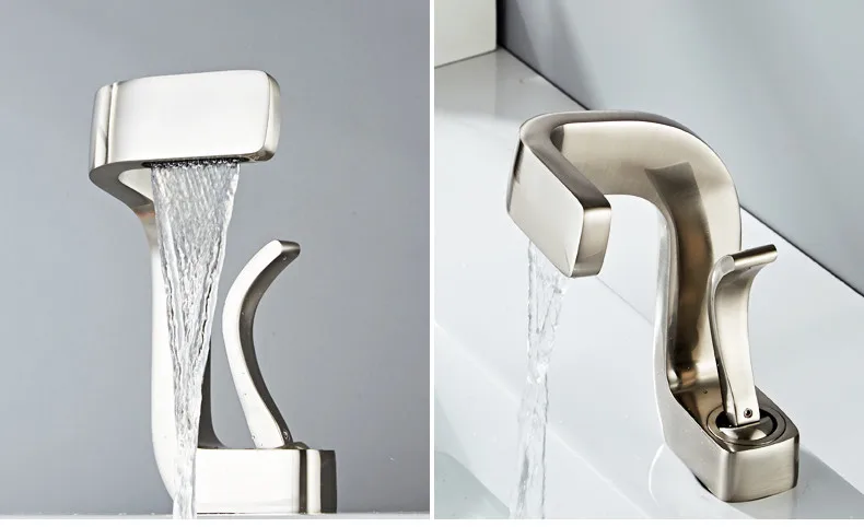 Name: Faucet Bathroom Luxury Waterfall Taps Brass Washbasin Faucet Hot and Cold Mixer Taps Creative Gold Black Chrome Torneira