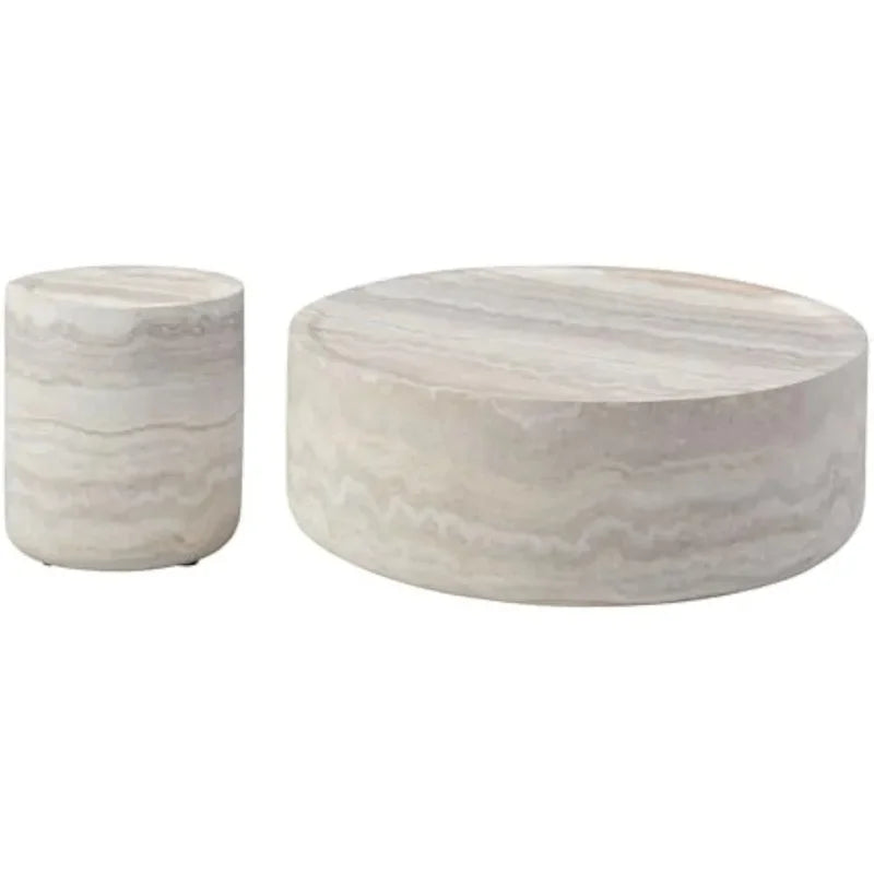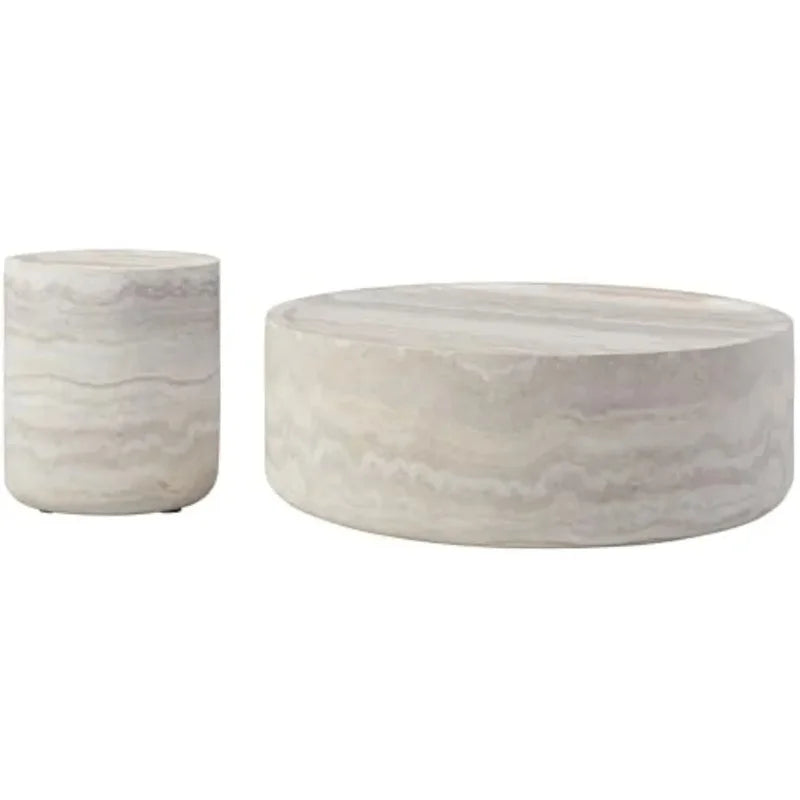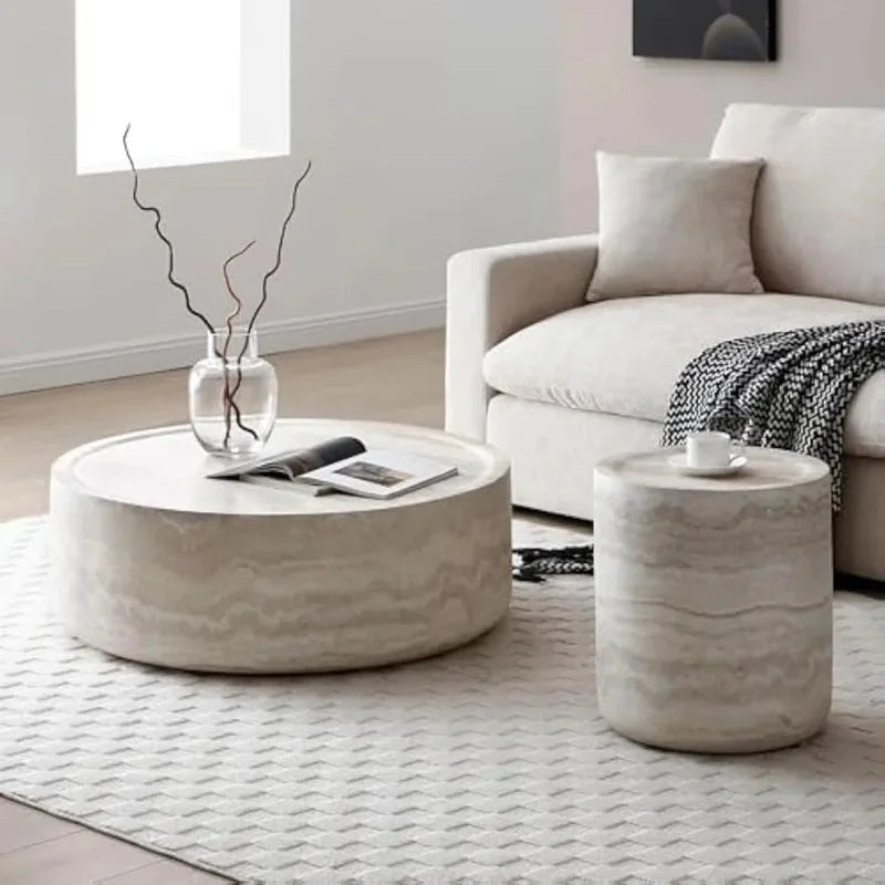 Set of 2 - ROUND TEXTURED TRAVERTINE ACCENT TABLES