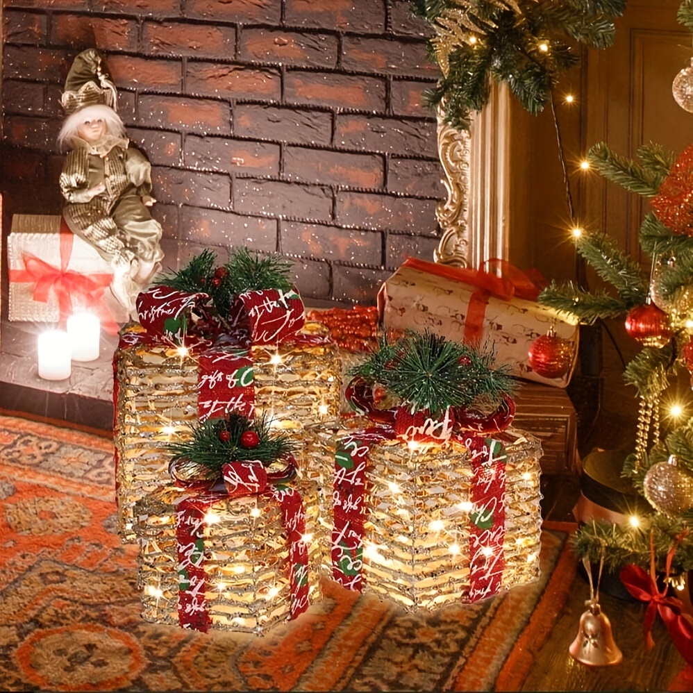 【ENERGY SAVING,SUPER BRIGHT & SAFETY USE】: The gift boxes contain LED lights which can save energy.And the used LEDs are super-bright ones which are much more bright than normal LEDs.The gift box light is powered by 5V low voltage output adaptor for safety use.Plug in,put it where you want,watch and enjoy this lighted holiday present gift boxes.The lights can be reused for many years.