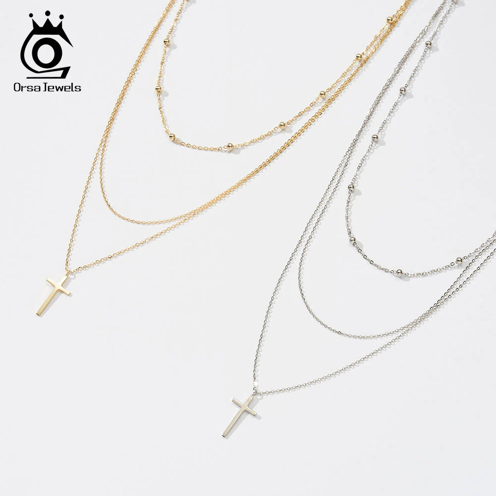 STERLING SILVER CROSS SHAPED NECKLACE PENDANT W/BEADS